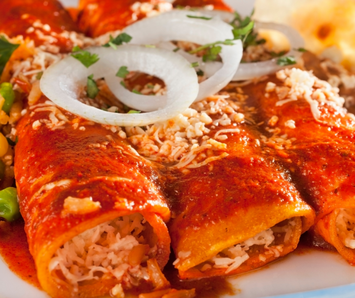 Baña con la salsa y puedes servir con crema, queso y aguacate.