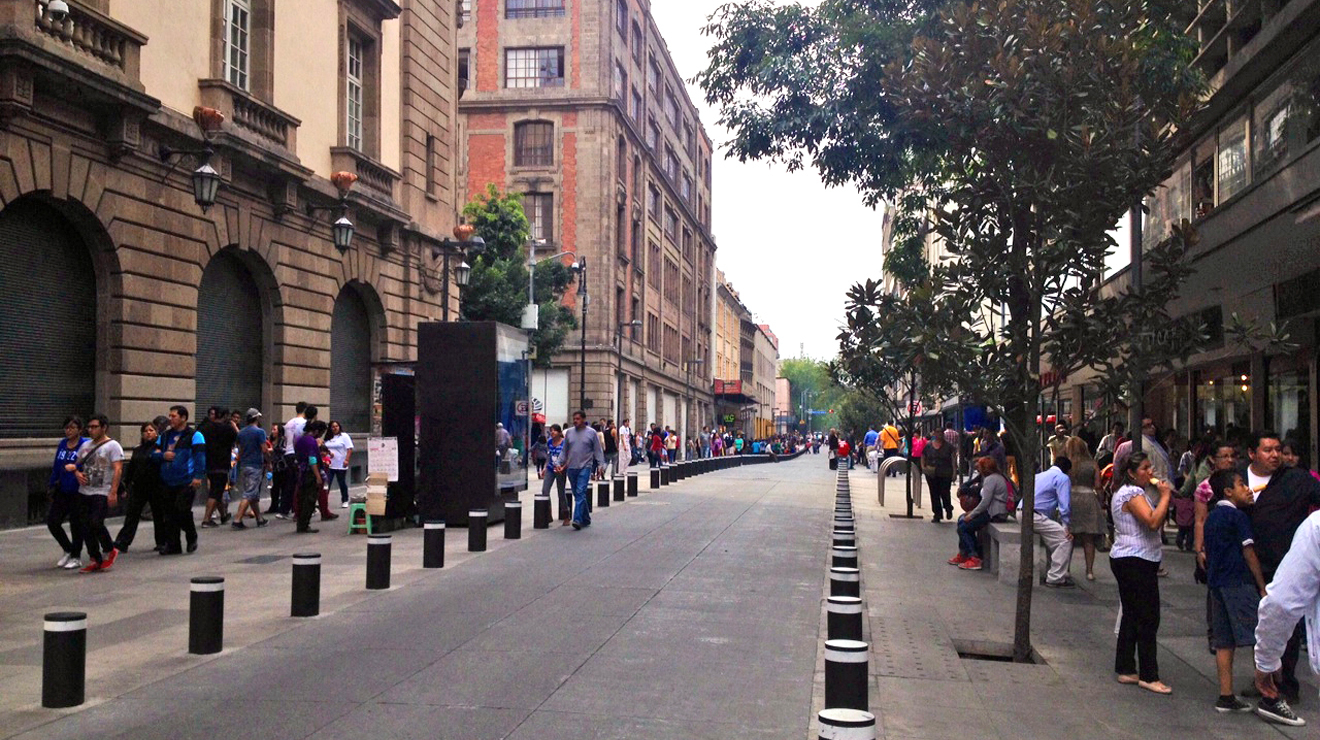 Entre la aglomeración de los transeúntes, unos que caminan muy despacio y otros con prisa, se vislumbra, de pronto, un auto seguido de otro, pero también vemos ciclistas, a quienes se les permite transitar por ahí porque se trata de una calle diseñada para carros, bicicletas y peatones. El panorama no estaría completo si no existieran un sinnúmero de comercios que lo flanquean. Así es 16 de Septiembre, una de las avenidas más famosas de la Ciudad de México.
