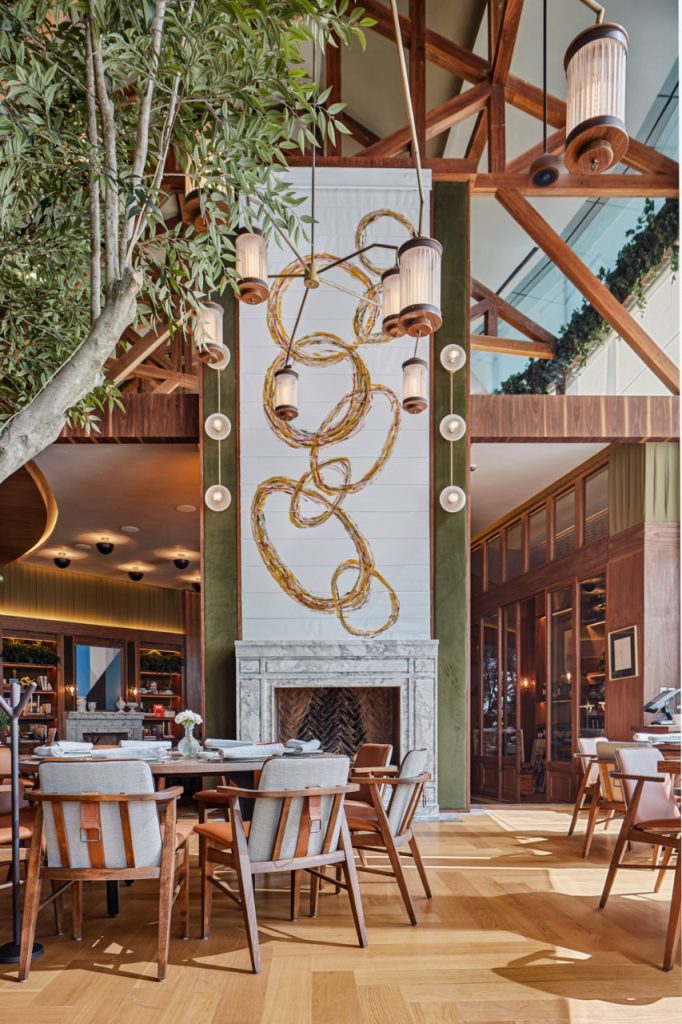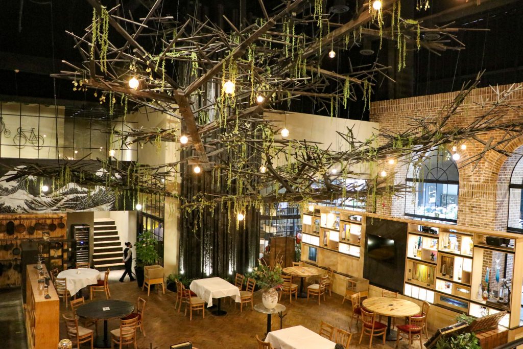 Los techos miden 13 metros de altura, brindando sensación de libertad que junto al enorme árbol al centro, forman un ambiente de encuentro con la naturaleza.