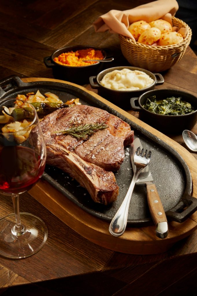 De entradas, empanadas argentinas de carne, queso provoleta, alcachofas a la parrilla y tuétanos al carbón, seguidas del clásico jugo de carne, fideo seco o una saludable ensalada tamaño jumbo.