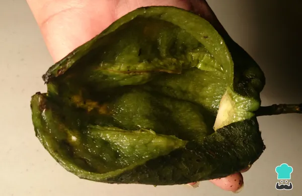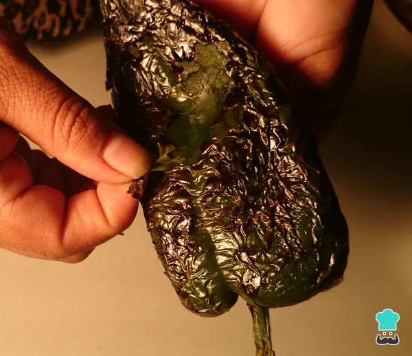 Retira los chiles de la bolsa y empieza a pelarlos. En este punto la piel se desprenderá fácilmente.
