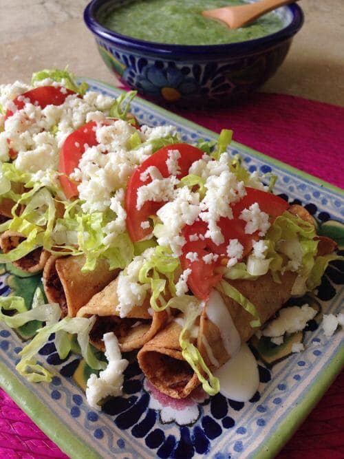 Ralla la lechuga y acomoda los tacos en un plato y ponles encima, crema, guacamole y jitomate.