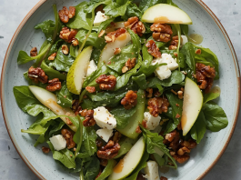 Nuez de castilla en una buena ensalada con Acelgas, Pera y Queso